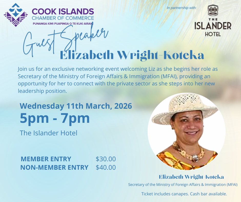 With guest speaker Elizabeth Wright-Koteka, the newly appointed Secretary of the Cook Islands Ministry of Foreign Affairs & Immigration MFAI). Click to register!